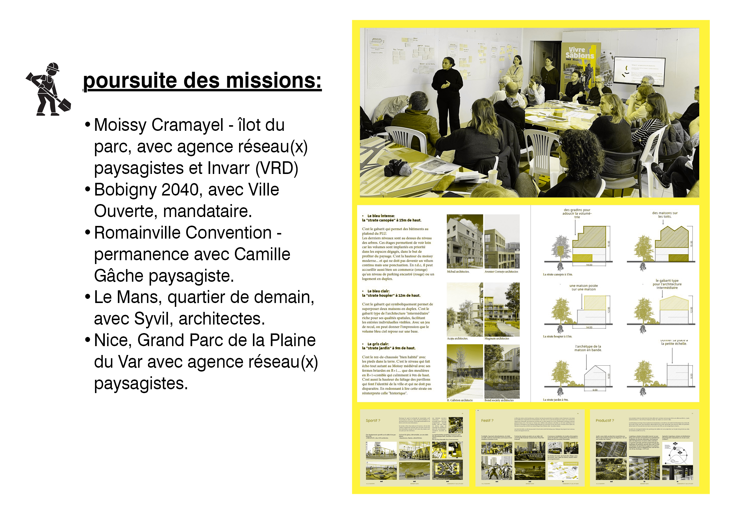 la mission idéale est en équipe avec des parties-prenantes de confiance, conscientes et pro-actives pour la qualité du vivre ensemble et pour la planète, requerrant des compétences hybrides, entre spatialisation, expertise rez-de-ville et maîtrise d’usage.