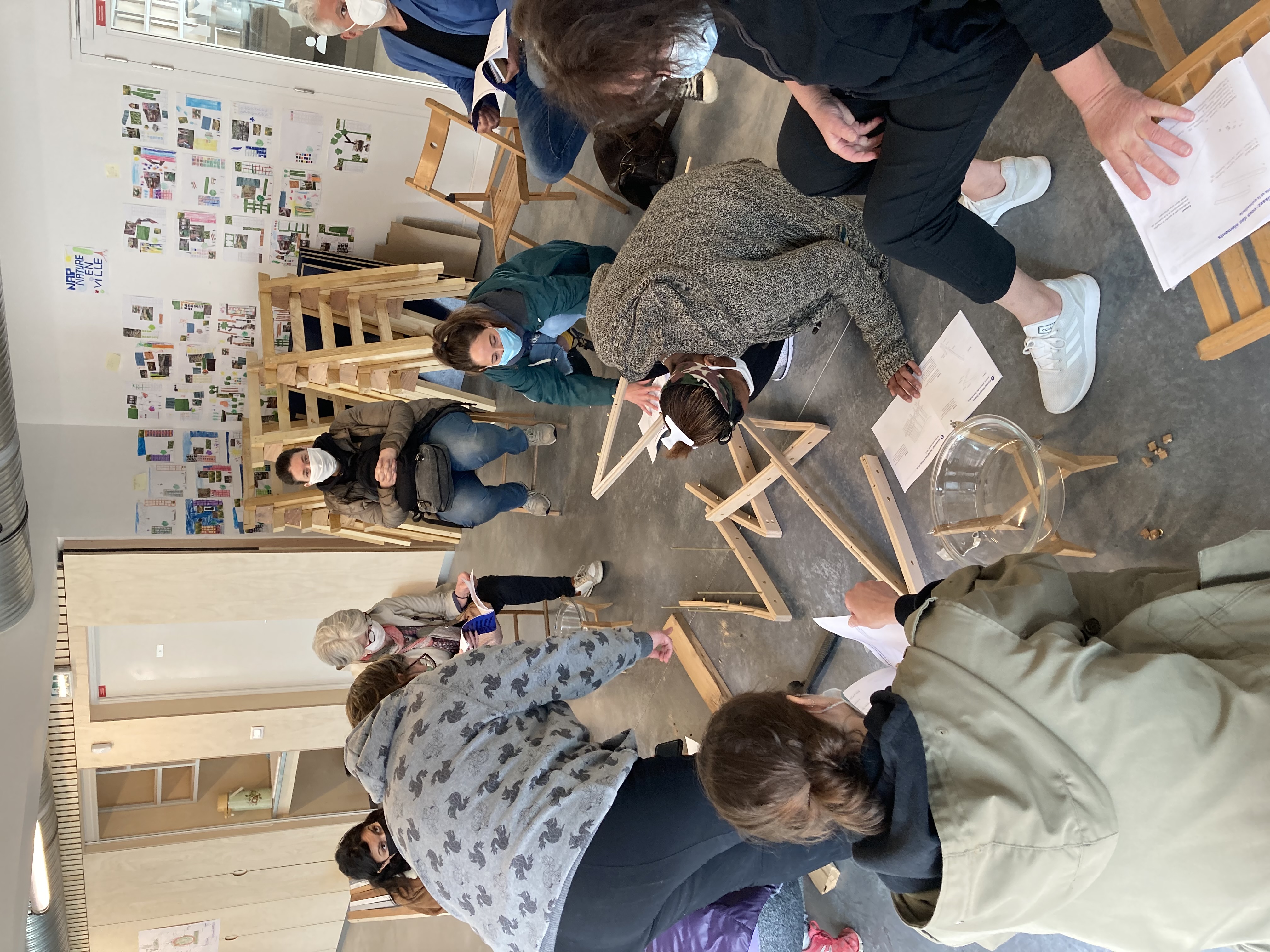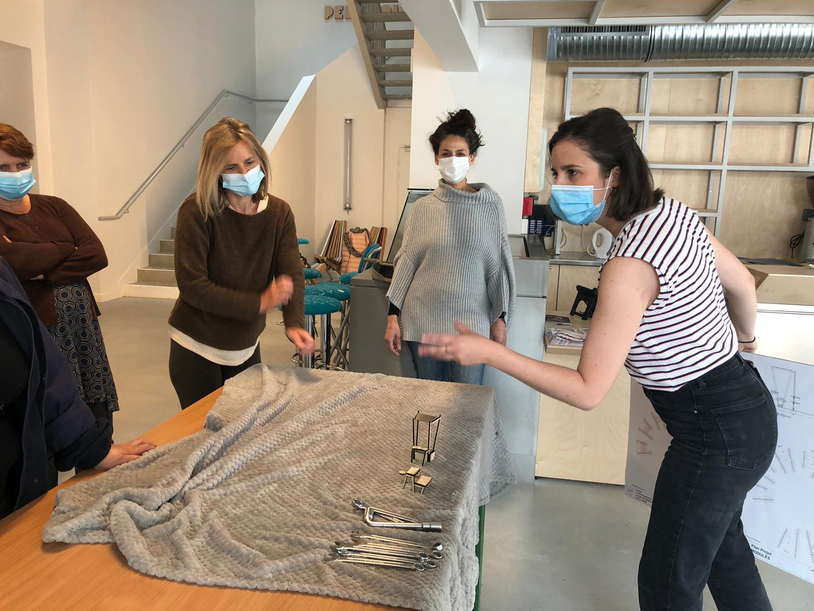 atelier de présentation de l’équipe lauréate ( la remanufacture); présentation de l’esquisse retenue et discussion autour du mode de faire et des envies des futurs usager.e.s.